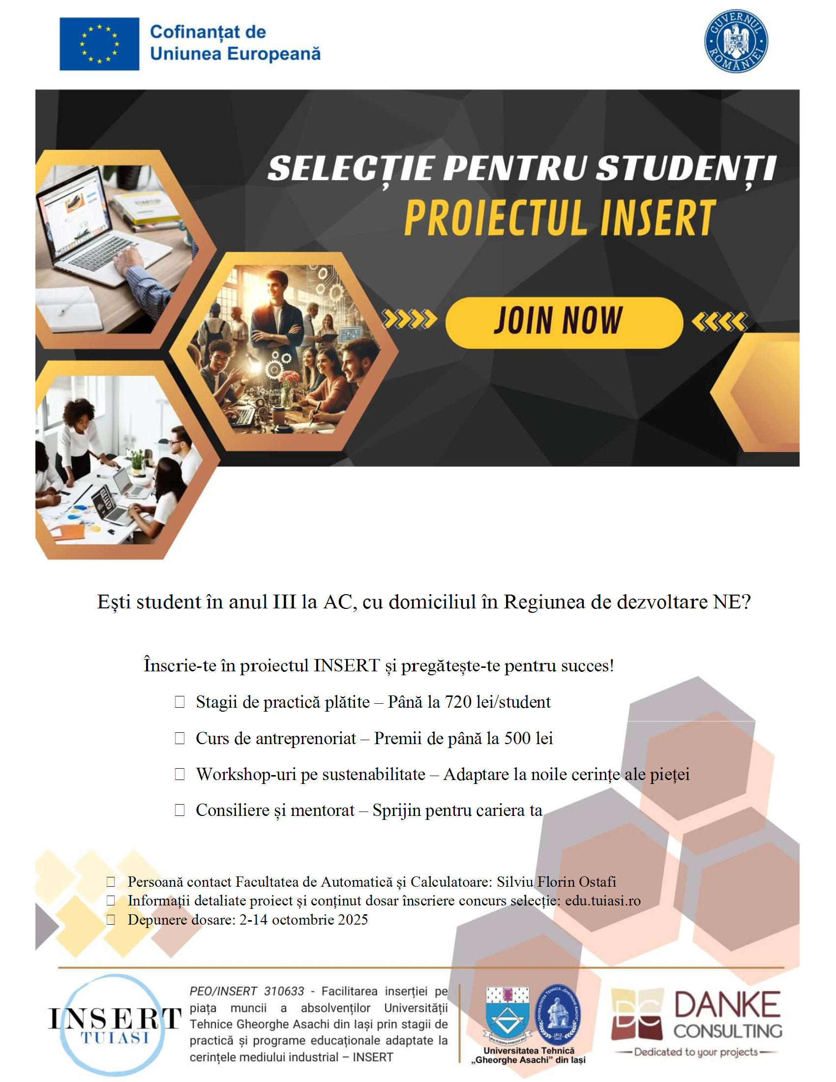 INSERT – stagii de practică și programe educaționale adaptate la cerințele mediului industrial